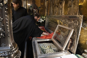 В Лавре освятили знамена и шевроны перед отправкой их в зону специальной военной операции