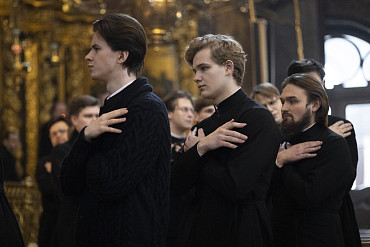 25 февраля в Лавре прошли богослужения среды первой седмицы Великого поста. Литургию Преждеосвященных Даров в Успенском соборе возглавил архим. Макарий (Веретенников).