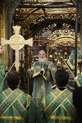 8 октября 2013 года, в день преставления преподобного Сергия, игумена Радонежского, всея России чудотворца (1392), Святейший Патриарх Московский и всея Руси Кирилл совершил Божественную литургию в Успенском соборе Свято-Троицкой Сергиевой лавры.