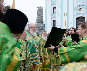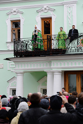 По окончании Литургии Предстоятель Русской Церкви и все архипастыри, совершавшие в этот день богослужения в Лавре, вышли крестным ходом на площадь, где был совершен молебен преподобному Сергию Радонежскому. После молебна Святейший Владыка с балкона Патриарших покоев обратился к участникам торжеств с Первосвятительским словом.