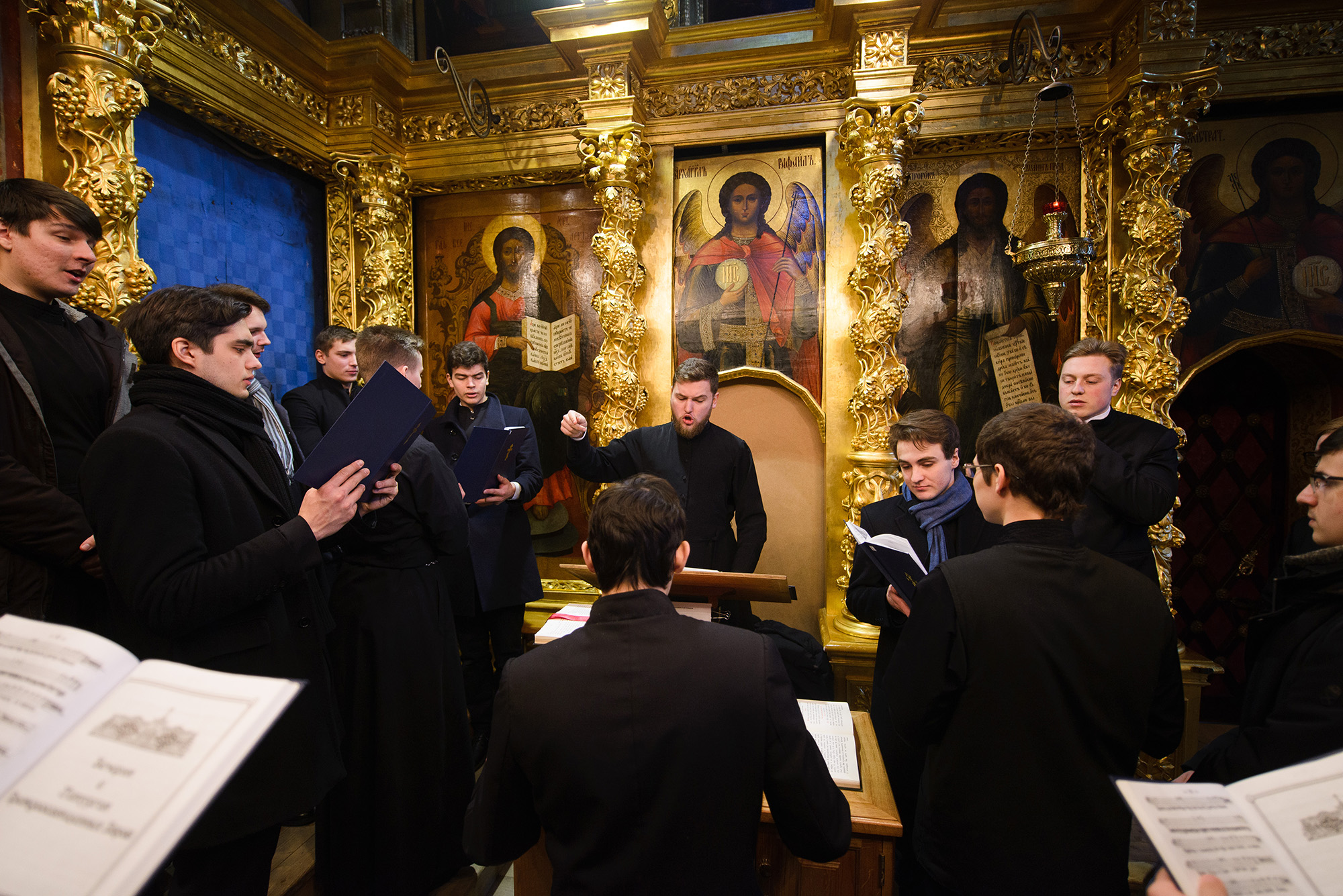 За богослужениями пели братский хор под управлением архимандрита Глеба (Кожевникова) и третий академический хор под руководством чтеца Серафима Мороза.