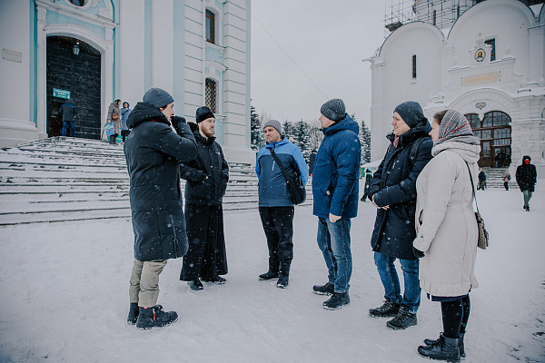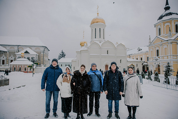 Гостей обители встретил ее насельник иеродиакон Герман (Бурлаков), ответственный за церковную реабилитацию лиц, пострадавших от сект и отпавших от Православия. Вместе с экскурсоводом Паломнического центра Лавры он проводил группу в Троицкий собор, ко святым мощам преподобного Сергия Радонежского, а затем познакомил гостей с историей монастыря и его храмами.