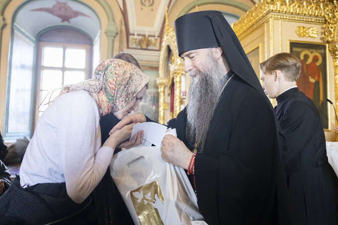 Преосвященный владыка обратился ко всем присутствующим с архипастырским словом по случаю праздника Светлого Христова Воскресения и вручил памятные подарки.