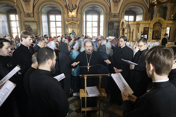 16 апреля наместник Троице-Сергиевой Лавры епископ Сергиево-Посадский и Дмитровский Кирилл встретился с сотрудниками обители и Московской духовной академии в Трапезном храме монастыря.