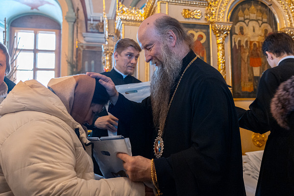 12 января в Трапезном храме Троице-Сергиевой Лавры состоялась встреча ее наместника епископа Сергиево-Посадского и Дмитровского Кирилла с сотрудниками обители и Московской духовной академии.