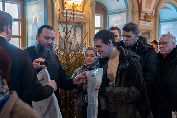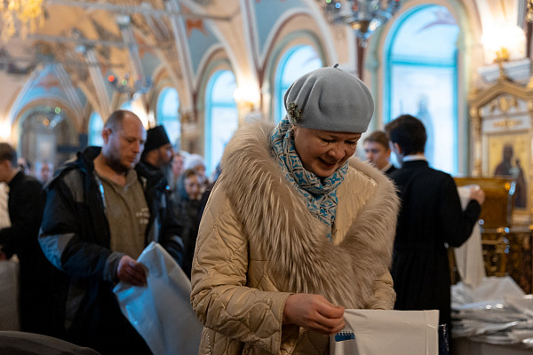 По окончании слова каждому сотруднику Лавры и Академии был вручен рождественский подарок.