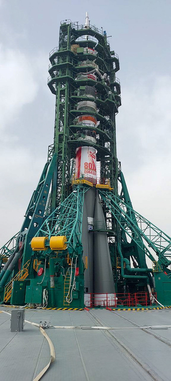 Накануне старта, в день Благовещения Пресвятой Богородицы, на площадке № 31 космодрома Байконур настоятель храма Преображения Господня в Звездном городке, находящегося под окормлением братии Свято-Троицкой Сергиевой Лавры, иеромонах Пафнутий (Фокин) в сослужении настоятеля храма великомученика Георгия Победоносца на Байконуре иерея Даниила совершил чин освящения ракеты «Союз-2.1а», названной «Ракетой победы».
