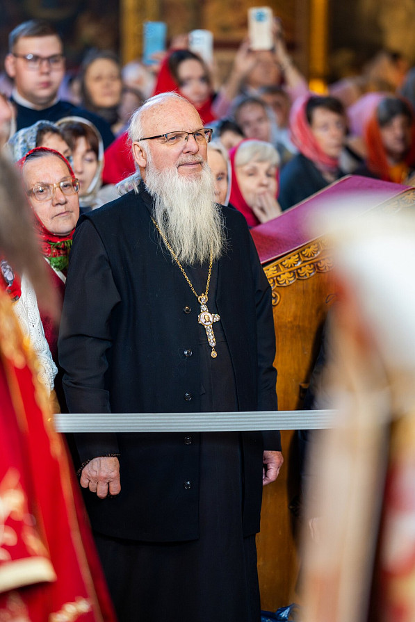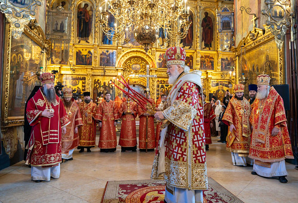 В Успенском соборе Предстоятель Русской Православной Церкви возглавил служение Божественной литургии. Его Святейшеству сослужил наместник обители епископ Сергиево-Посадский и Дмитровский Кирилл, преосвященные архипастыри, насельники Лавры и духовенство г. Москвы.