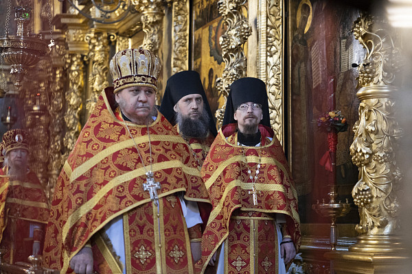 Позднюю Литургию в Успенском соборе Лавре возглавил архимандрит Агафодор (Маркевич). За богослужением пел хор под управлением диакона Александра Левенцова.