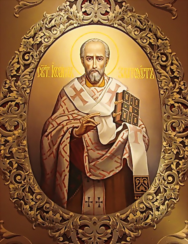 Святитель Иоанн Златоуст, архиепископ Константинопольский, один из трех Вселенских святителей, родился в Антиохии ок. 347 года, в семье военачальника. Его отец, Секунд, умер вскоре после рождения сына. Мать святого Иоанна, Анфуса, оставшись в двадцать лет вдовой, не стала более выходить замуж и отдала все силы воспитанию сына в правилах христианского благочестия. Юноша учился у лучших философов и риторов. Но, пренебрегая суетными знаниями язычников, будущий святитель рано обратился к углубленному изучению Священного Писания и молитвенному созерцанию. Святитель Мелетий, епископ Антиохийский (память 12 февраля), полюбивший Иоанна, как сына, наставил его в вере и в 367 году крестил. Через три года святой Иоанн был поставлен во чтеца. После того, как святитель Мелетий был отправлен в ссылку императором Валентом в 372 году, Иоанн совместно с Феодором (впоследствии – епископом Мопсуетским) учился у опытных наставников подвижнической жизни, пресвитеров Флавиана и Диодора Тарсийского. Особенное влияние на юношу оказал высокообразованный Диодор. Когда скончалась мать Иоанна, он принял иночество, которое называл «истинной философией». Вскоре Иоанна и Василия сочли достойными кандидатами для занятия епископских кафедр, и друзья решили удалиться в пустыню, избегая назначения. Однако святой Иоанн, сам уклонившись из смирения от архиерейского сана, тайно содействовал посвящению Василия. В это время святой Иоанн написал «Шесть слов о священстве», великое творение православного пастырского Богословия. Четыре года провел святой в трудах пустыннического жительства, подвизаясь под руководством опытного духовного наставника. Здесь были им написаны три книги «Против вооружающихся на ищущих монашества» и сочинение «Сравнение инока с царем» («Сравнение власти, богатства и преимуществ царских с истинным и христианским любомудрием монашеской жизни»), проникнутые высоким представлением о достоинстве иноческого звания. Два года святой соблюдал полное безмолвие, находясь в уединенной пещере. Для восстановления здоровья Иоанн должен был возвратиться в Антиохию. В 381 году святой епископ Мелетий Антиохийский посвятил его во диакона. Последующие годы были посвящены работе над новыми богословскими творениями: «О Провидении» («К Стагирию подвижнику»), «Книга о девстве», «К молодой вдове» (два слова), «Книга о святом Вавиле и против Юлиана и язычников».