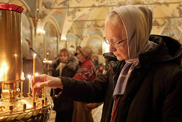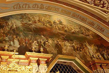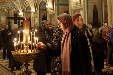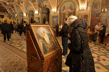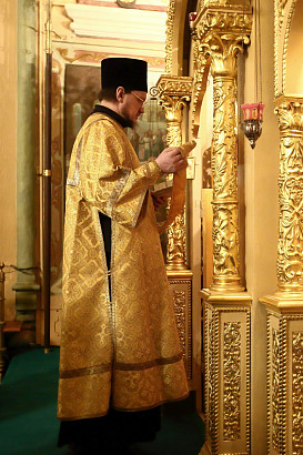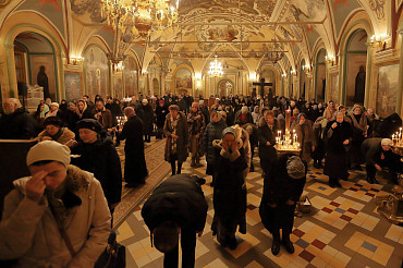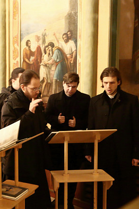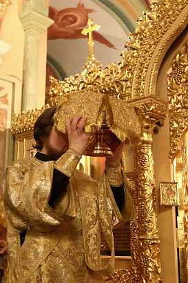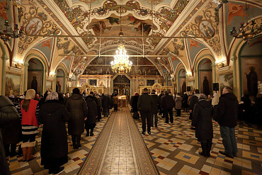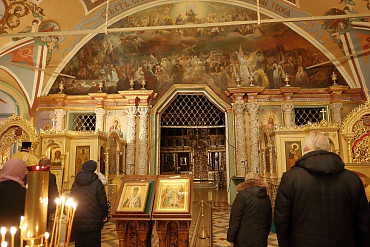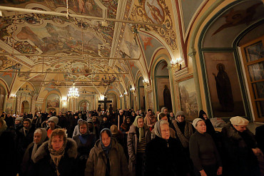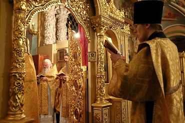 Божественная литургия в северном приделе Трапезного храма Троице-Сергиевой Лавры, освященном в честь святителя Иоасафа, епископа Белгородского.