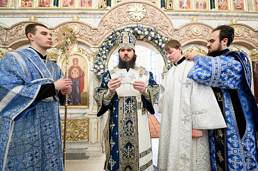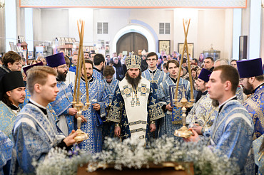 4 ноября, в день празднования Казанской иконы Божией Матери, епископ Сергиево-Посадский и Дмитровский Фома совершил Божественную литургию в Богоявленском храме г. Химки Московской области.