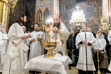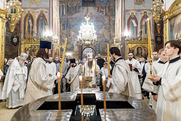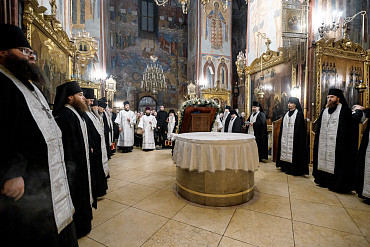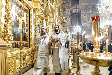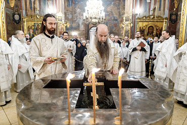 18 и 19 января в Троице-Сергиевой Лавре прошли богослужения в честь праздника Крещения Господня. Всенощное бдение и ночную Божественную литургию с чином Великого освящения воды в Успенском соборе обители совершил наместник епископ Сергиево-Посадский и Дмитровский Кирилл.