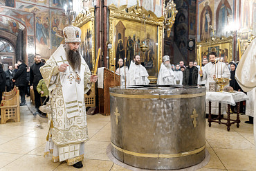 «Крещается Христос и восходит от воды»: в праздник Богоявления епископ Кирилл совершил торжественные богослужения в Успенском соборе Лавры