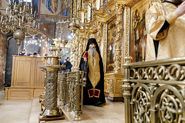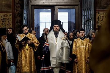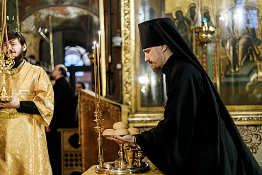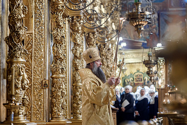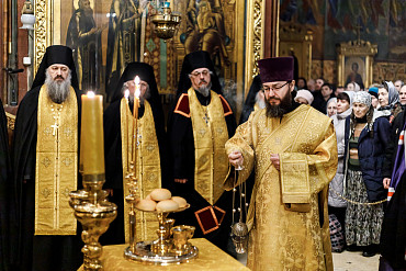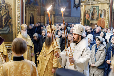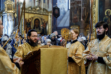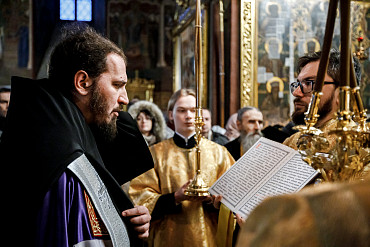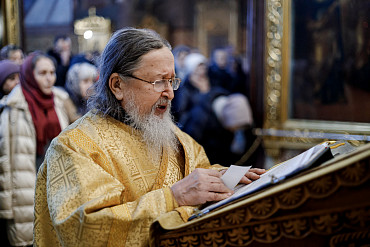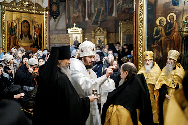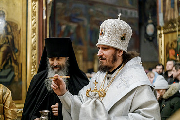 В первую подготовительную Неделю Великого поста наместник Троице-Сергиевой Лавры совершил воскресное богослужение.