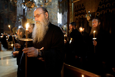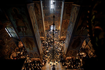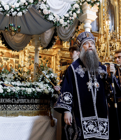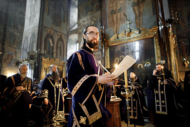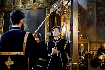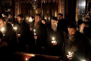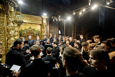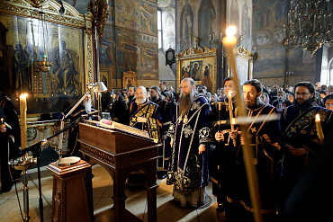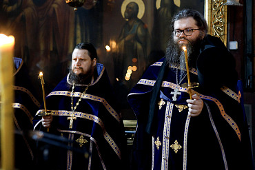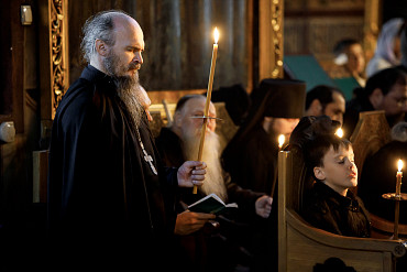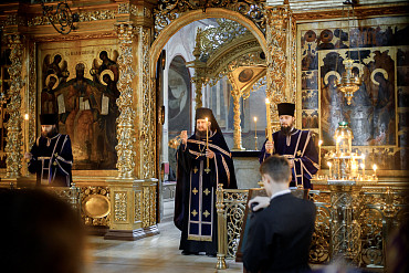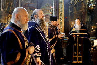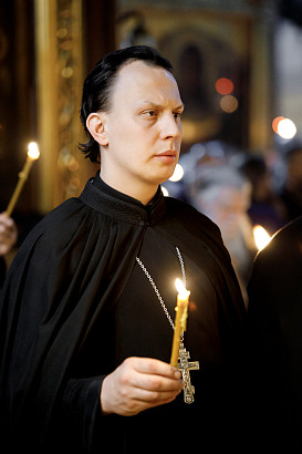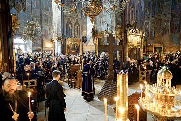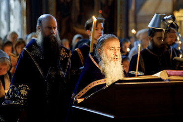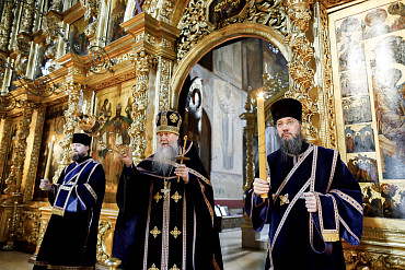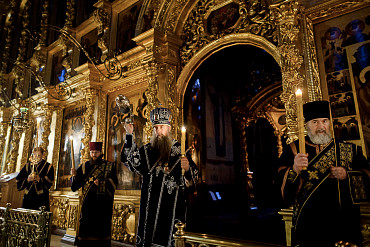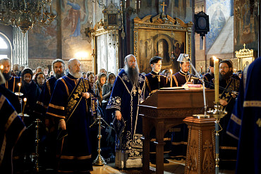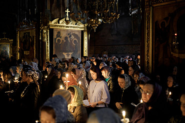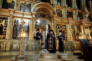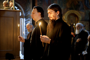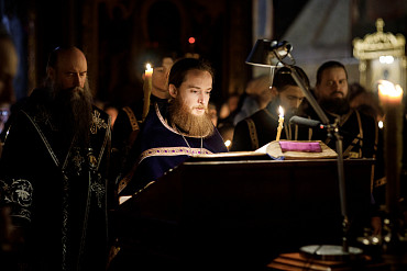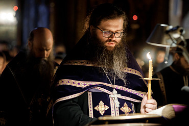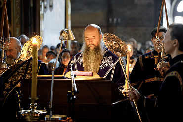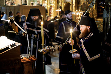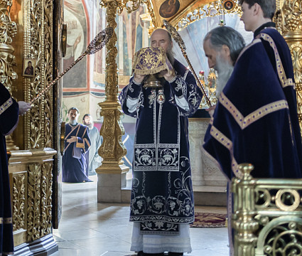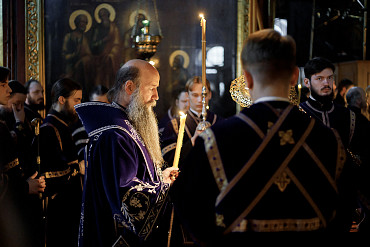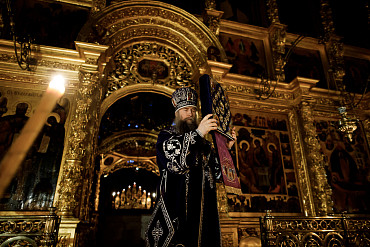 2 мая в Лавре совершили утреню Великой Пятницы с чтением двенадцати Евангелий. Последование совершил епископ Сергиево-Посадский и Дмитровский Кирилл.