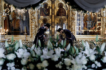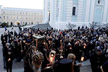 В пятницу Страстной седмицы в Лавре совершили вынос и погребение Плащаницы Спасителя