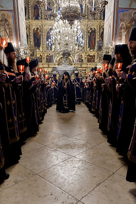3 мая днем наместник Троице-Сергиевой Лавры епископ Сергиево-Посадский и Дмитровский Кирилл в сослужении насельников обители в священном сане совершил вечерню с выносом Плащаницы, а вечером того же дня — утреню с чином погребения Плащаницы.