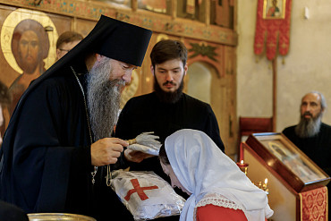 Наместник обители вручил сестрам милосердия форменные фартуки и белые платки с крестом
