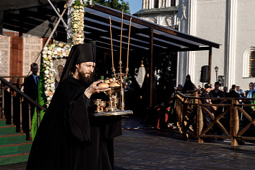 18 июля Троице-Сергиева обитель празднует обретение мощей преподобного Сергия, игумена Радонежского. Накануне праздника Его Святейшество в сослужении архиереев Русской Православной Церкви и братии Лавры совершил малую вечерню с чтением акафиста преподобному Сергию. Вечером того же дня Предстоятель Русской Церкви возглавил всенощное бдение. В праздничное утро на площади перед Успенским собором Лавры Святейший Патриарх совершил Божественную литургию.