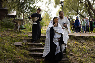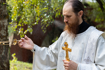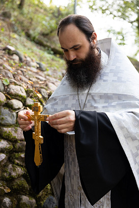 В день памяти прп. Саввы Сторожевского насельники Лавры совершили водосвятный молебен на источнике у стен монастыря.