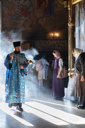 6 сентября Православная Церковь вспоминает чудесное явление Божией Матери, которого удостоился основатель Троицкой обители — преподобный Сергий Радонежский. Накануне праздника явления Божией Матери в Успенском соборе обители было совершено всенощное бдение, которое возглавил насельник монастыря архимандрит Евстафий (Солнцев). Божественную литургию в храме Явления Пресвятой Богородицы преподобному Сергию Радонежскому совершил архимандрит Алипий (Кастальский-Бороздин).