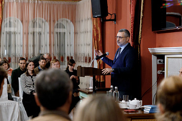 18 октября 2024 г. в рамках цикла бесед «Синтаксис», организованного культурно-просветительским центром Троице-Сергиевой Лавры «Киновия», состоялась встреча с председателем Синодального отдела по взаимоотношениям Церкви с обществом и СМИ, профессором МГИМО, главным редактором журнала «Фома» Владимиром Легойдой.