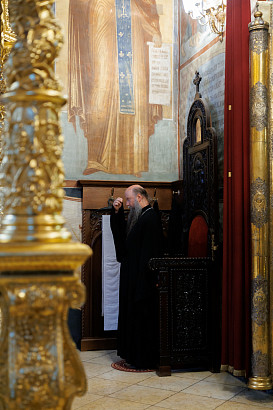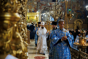 5 и 6 сентября в Лавре прошли уставные богослужения в честь явления Божией Матери прп. Сергию Радонежскому. Вечернее богослужение в Успенском соборе возглавил епископ Касимовский и Садовский Исаакий. Литургию в Михеевском храме возглавил казначей Лавры игумен Лев (Беленков).