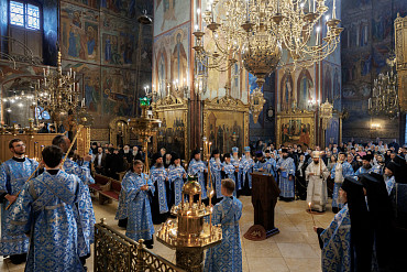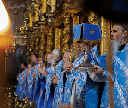 В воспоминание явления Божией Матери прп. Сергию Радонежскому в Лавре совершили Божественную литургию