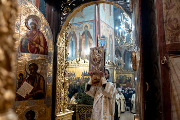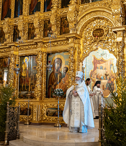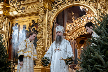 6 и 7 января в Лавре прошли богослужения Рождества Христова. Вечернее богослужение и Литургию в Успенском соборе совершил епископ Сергиево-Посадский и Дмитровский Кирилл.