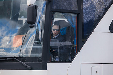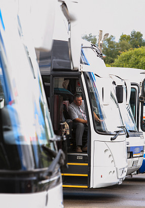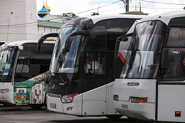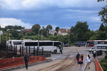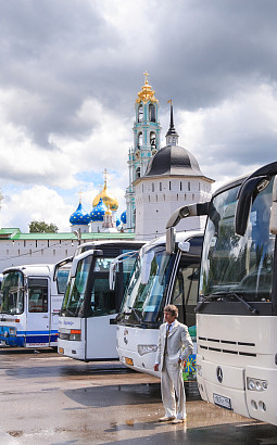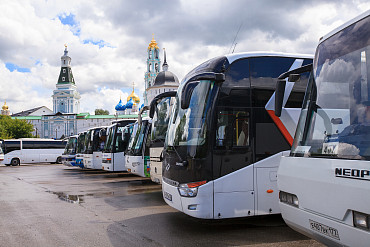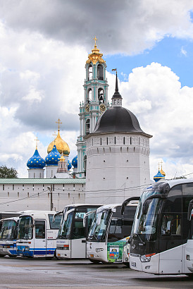 Стоянка туристических автобусов близ Лавры