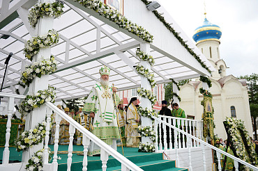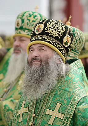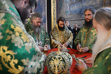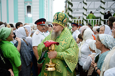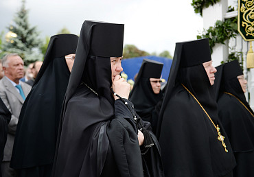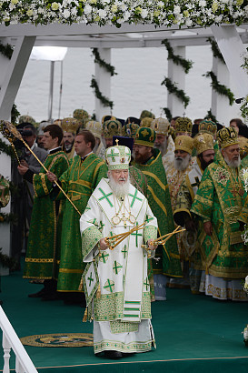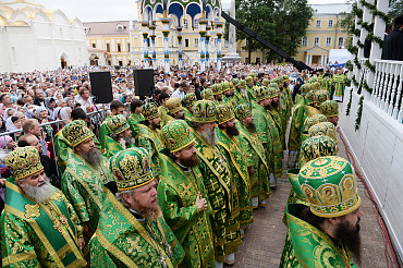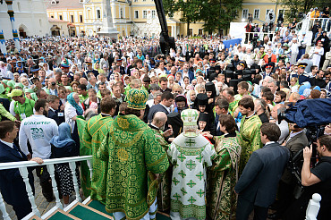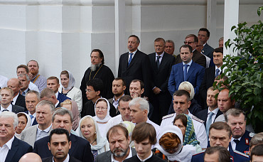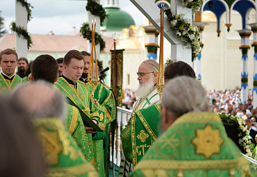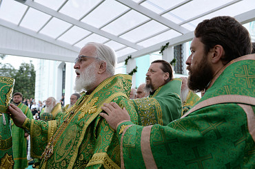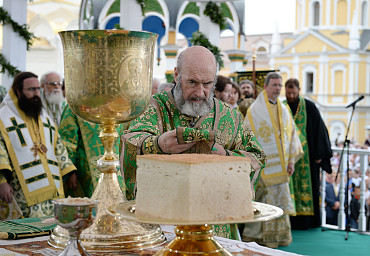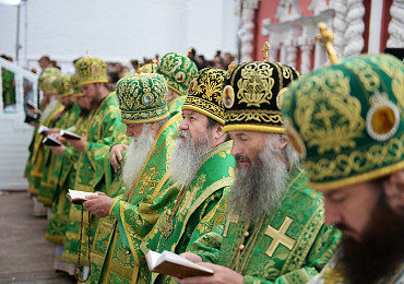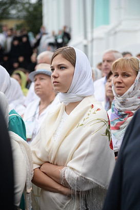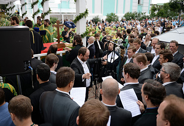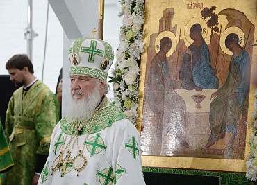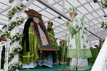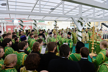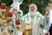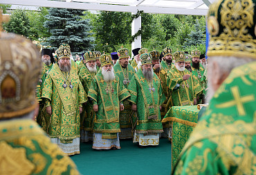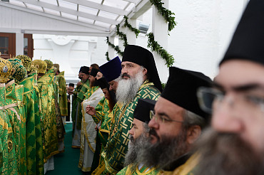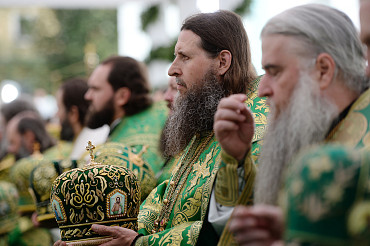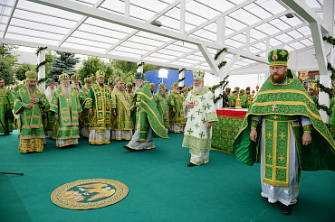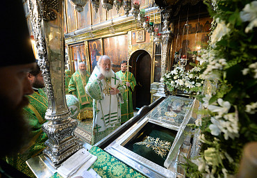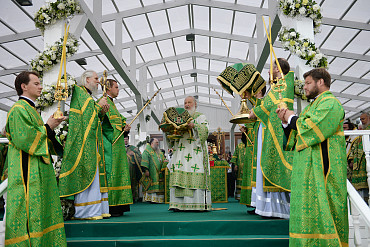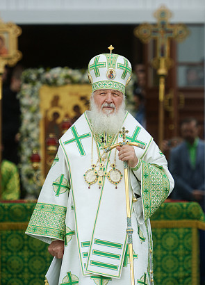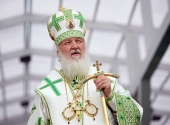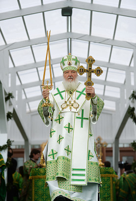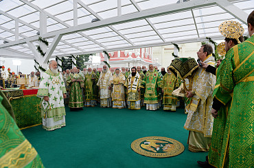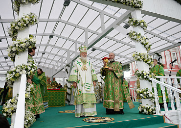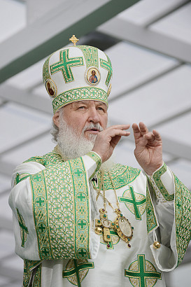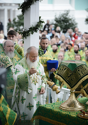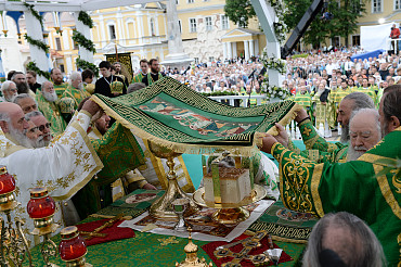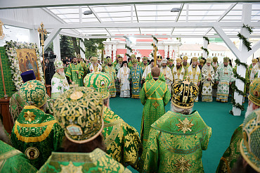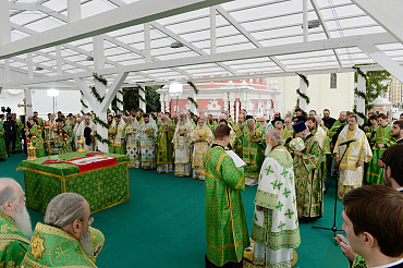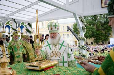 Святейший Патриарх Московский и всея Руси Кирилл возглавил служение праздничной Литургии на Соборной площади обители.