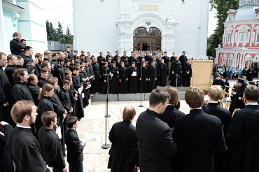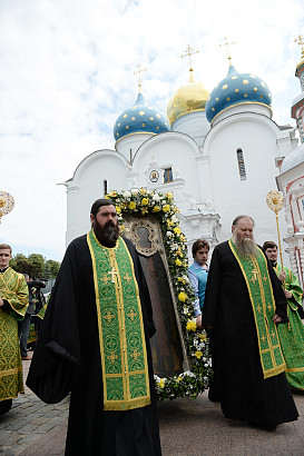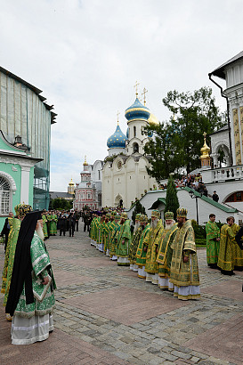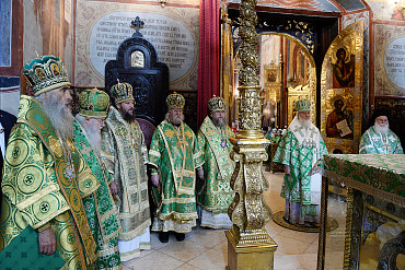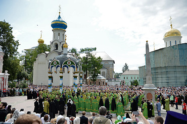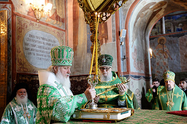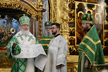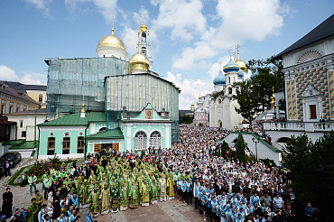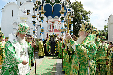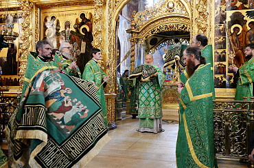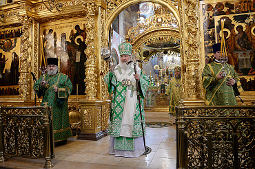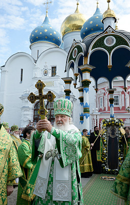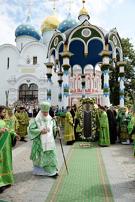 Патриаршее служение в Троице-Сергиевой Лавре в день праздника преподобного Сергия Радонежского. Божественная Литургия