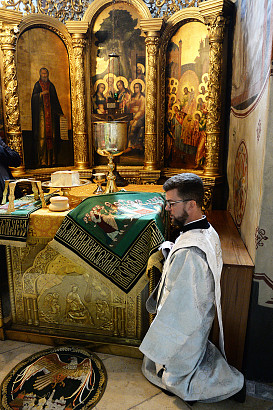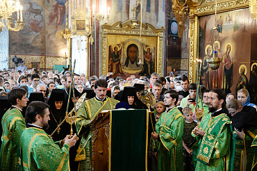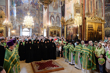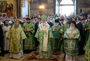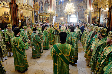 18 июля 2015 года, в день обретения честных мощей преподобного Сергия, игумена Радонежского, Святейший Патриарх Московский и всея Руси Кирилл совершил Божественную литургию в Успенском соборе Свято-Троицкой Сергиевой лавры. Фото: С.Н. Власов. Источник: Пресс-служба Патриарха Московского и всея Руси.