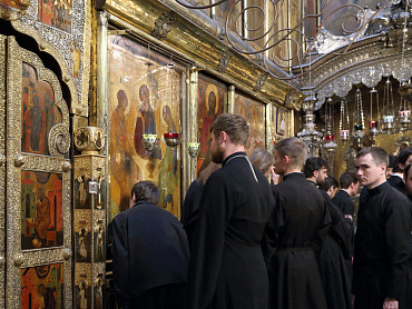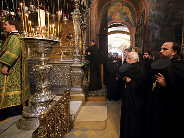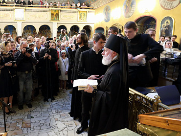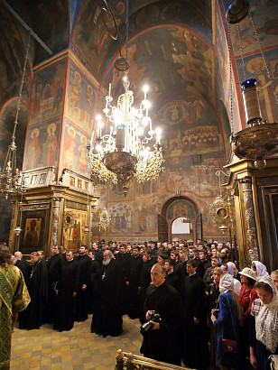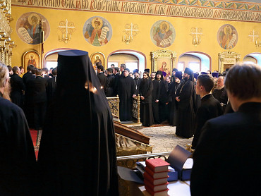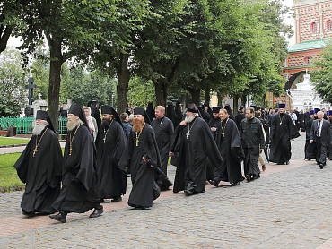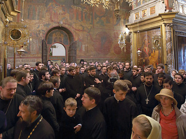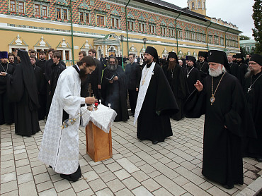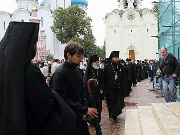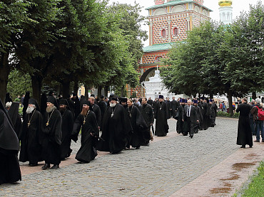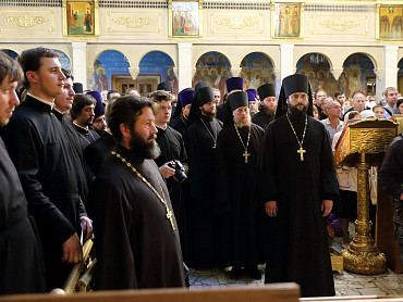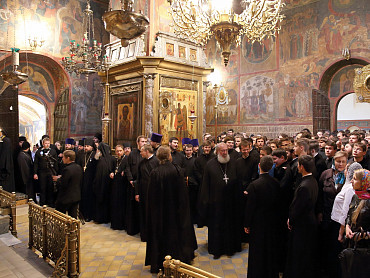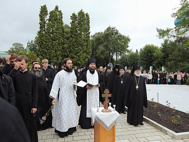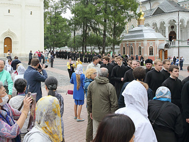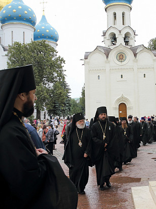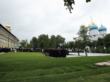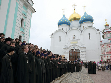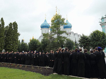 12 июля 2015 года, в день праздника святых первоверховных апостолов Петра и Павла, по окончании Божественной литургии преподаватели, студенты и выпускники Московской духовной академии направились в Троицкий собор, где архимандрит Иеремия совершил молебен преподобному Сергию, игумену Радонежскому. По завершении молебна, после общих фотографий под лаврской колокольней, состоялась лития у памятника почившим наставникам. Затем в Покровской  храме состоялся благодарственный молебен и торжественный акт. Фото: пресс-служба СТСЛ