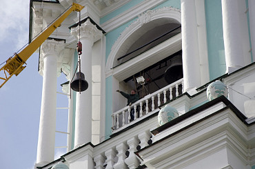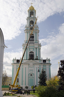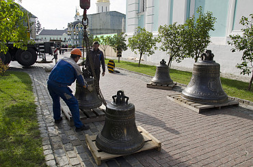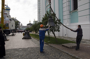 На колокольню Троице-Сергиевой Лавры установили четыре новых колокола