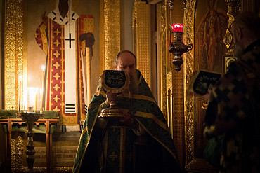 Ранняя Литургия в Никоновском приделе (Троицкий собор) в день памяти преподобного Никона, игумена Радонежского, ученика преподобного Сергия
