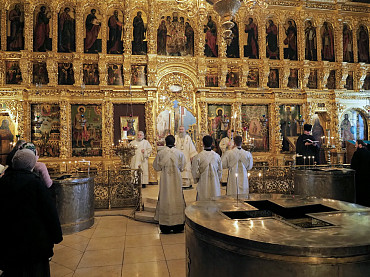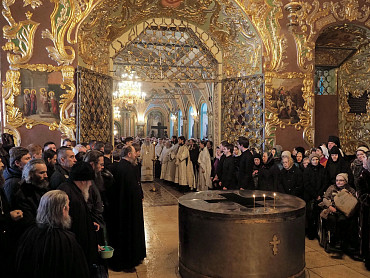 Фото: пресс-служба СТСЛ. Трапезный храм Троице-Сергиевой Лавры, 18 января 2018 года.