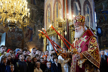 Патриаршее служение во вторник Светлой седмицы в Троице-Сергиевой Лавре. 10 апреля 2018 года