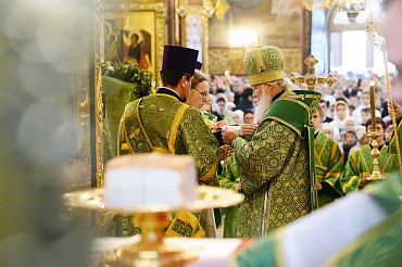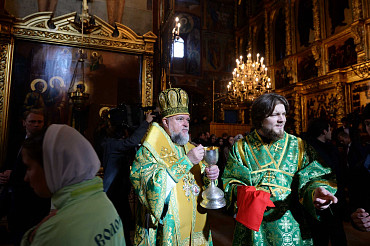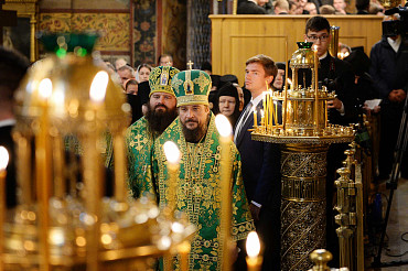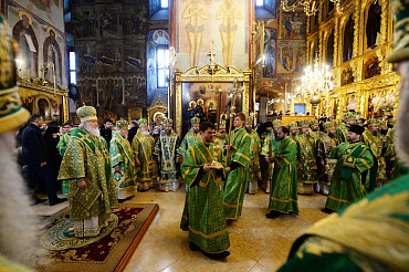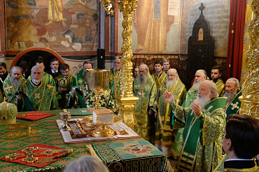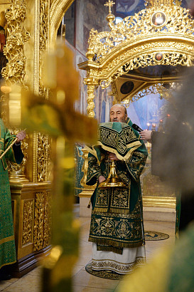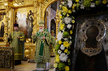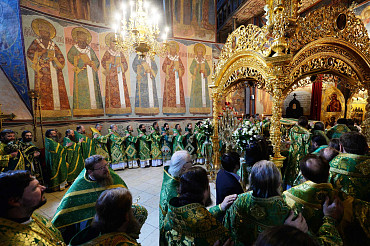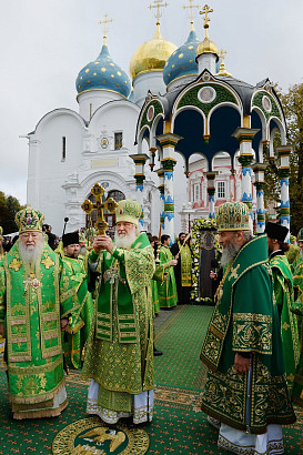 Патриаршее служение в день преставления преподобного Сергия Радонежского. Божественная литургия в Троице-Сергиевой лавре